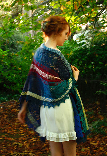 The pdf includes the original pattern knit with ColorShift Yarn, together with a variation using Jamieson’s Shetland Spindrift yarn.