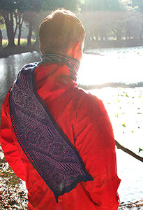 A complicated two color scarf combining stranded knitting,