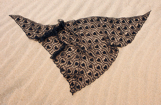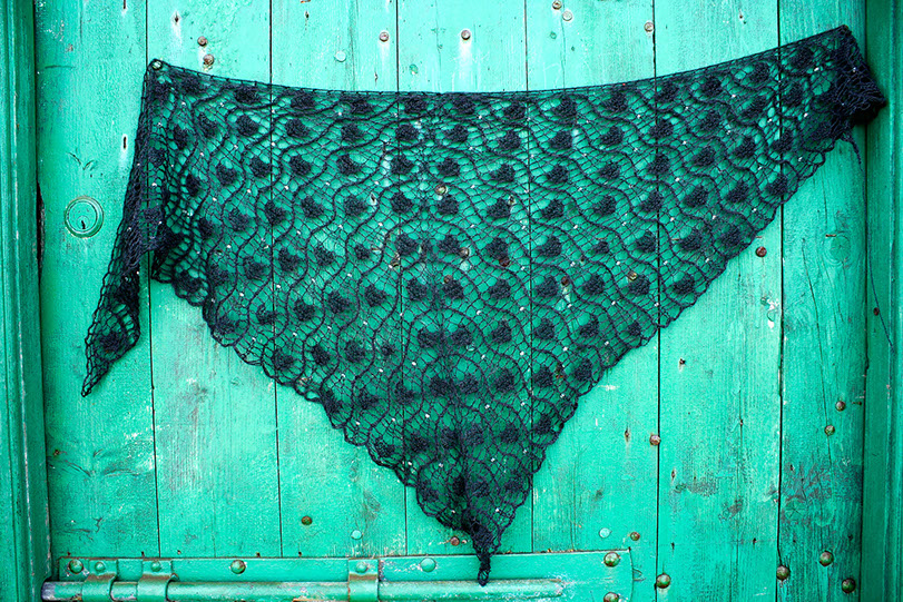 A decorative shawl knit from the top down on a 4mm/US6 needle